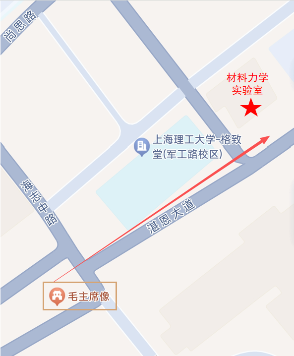 材料力学实验室位于北校区毛主席像后100米,具体位置见下图: