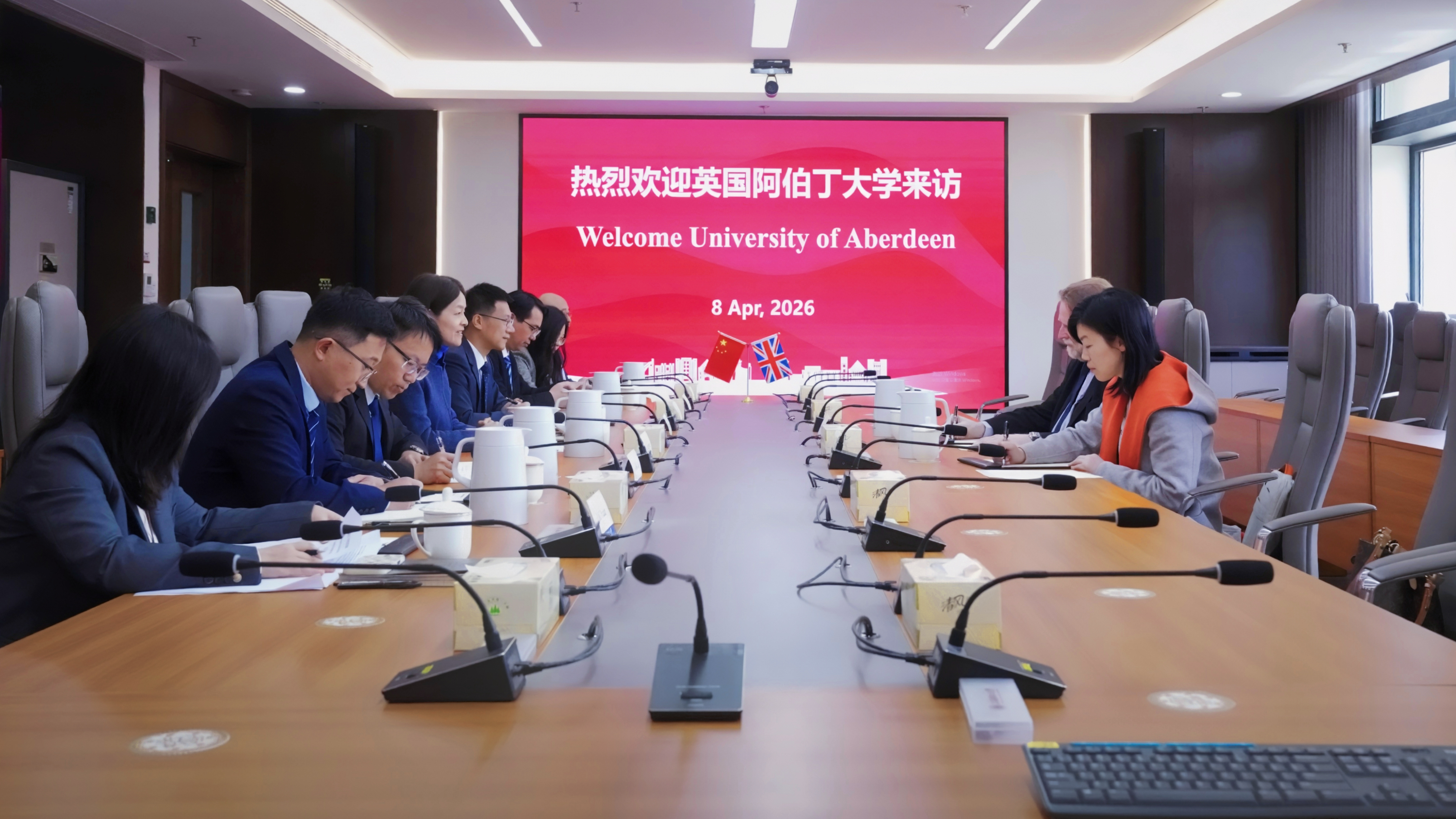 劳拉・毕夏普向代表团详细介绍了中英国际学院“一对多”特色合作办学模式,以及学院在国际认证、人才培养、科学研究、创新创业等方面的实践成果。她表示,学院与阿伯丁大学办学理念相通、发展战略契合,希望以此次访问为契机,推动双方在高层次人才联合培养、学科共建、科研协同、师生双向交流等方面开展深度合作,实现教育资源互通互鉴、强强联合。