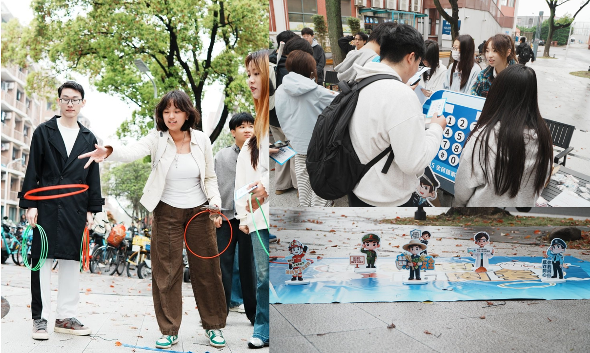 同时,校院两级学生组织协同发力,开展国家安全教育日系列活动。校学生会以“知码守安”为主题,设计数字卡片拼图互动环节,让同学们在拼出各类举报电话中强化安全意识。校研究生会推出“玩套圈,防圈套”互动游戏,引导大家在轻松氛围中理性甄别生活中的“圈套”与诱惑。外语学院学生会围绕“筑盾反谍”主题,通过趣味互动展示常见间谍行为特征,帮助同学们识别渗透手段。管理学院学生会以“慧眼识安”为主题,策划情报分拣体验环节,模拟真实场景下的信息筛选与处理,练就明辨是非的“火眼金睛”。基础学部举办“笔诺安行”签名活动,师生郑重签名、书写感悟,以行动表达维护国家安全的责任与担当。