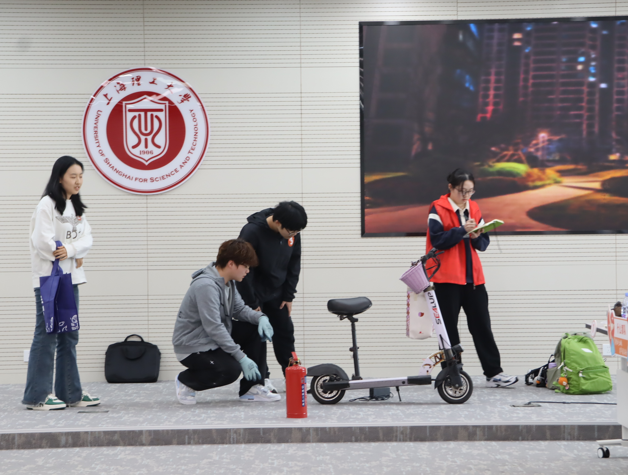 在机械工程学院与长白新村街道联合举办“统筹发展安全线 筑牢青春防火墙”主题活动中,市公安局文化保卫分局、杨浦区国家保密局、区人民检察院、区消防救援站、区反邪教协会等专家受邀亲临指导。现场设置安全主题沙龙、案例解析、消防技能实训等环节。同学们自编自演的反诈微电影也精彩亮相。大家纷纷表示,将以此次活动为契机,进一步增强国家安全意识与行动自觉,坚决抵制邪教侵蚀,守护清朗校园环境,为校园安全贡献青春力量。