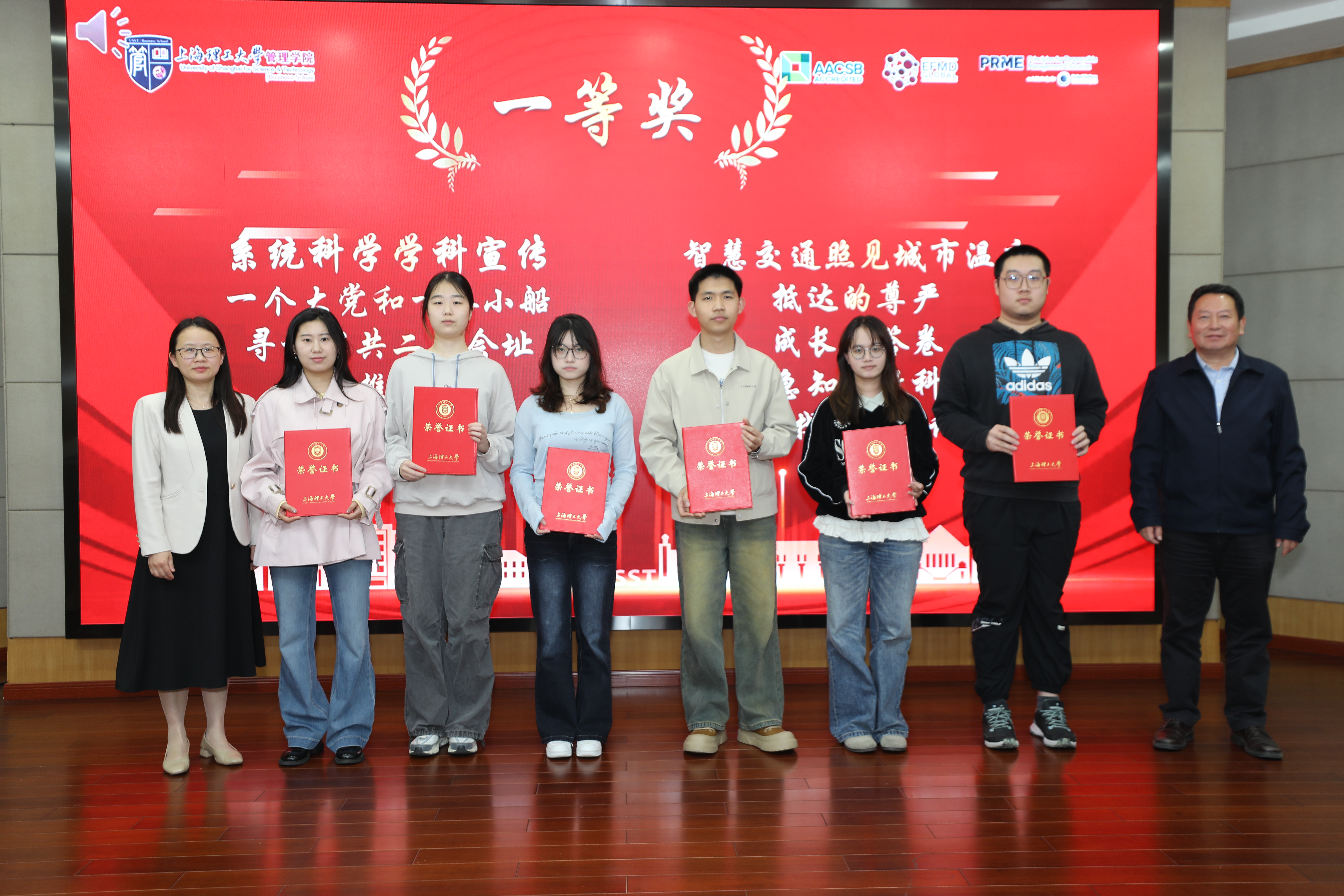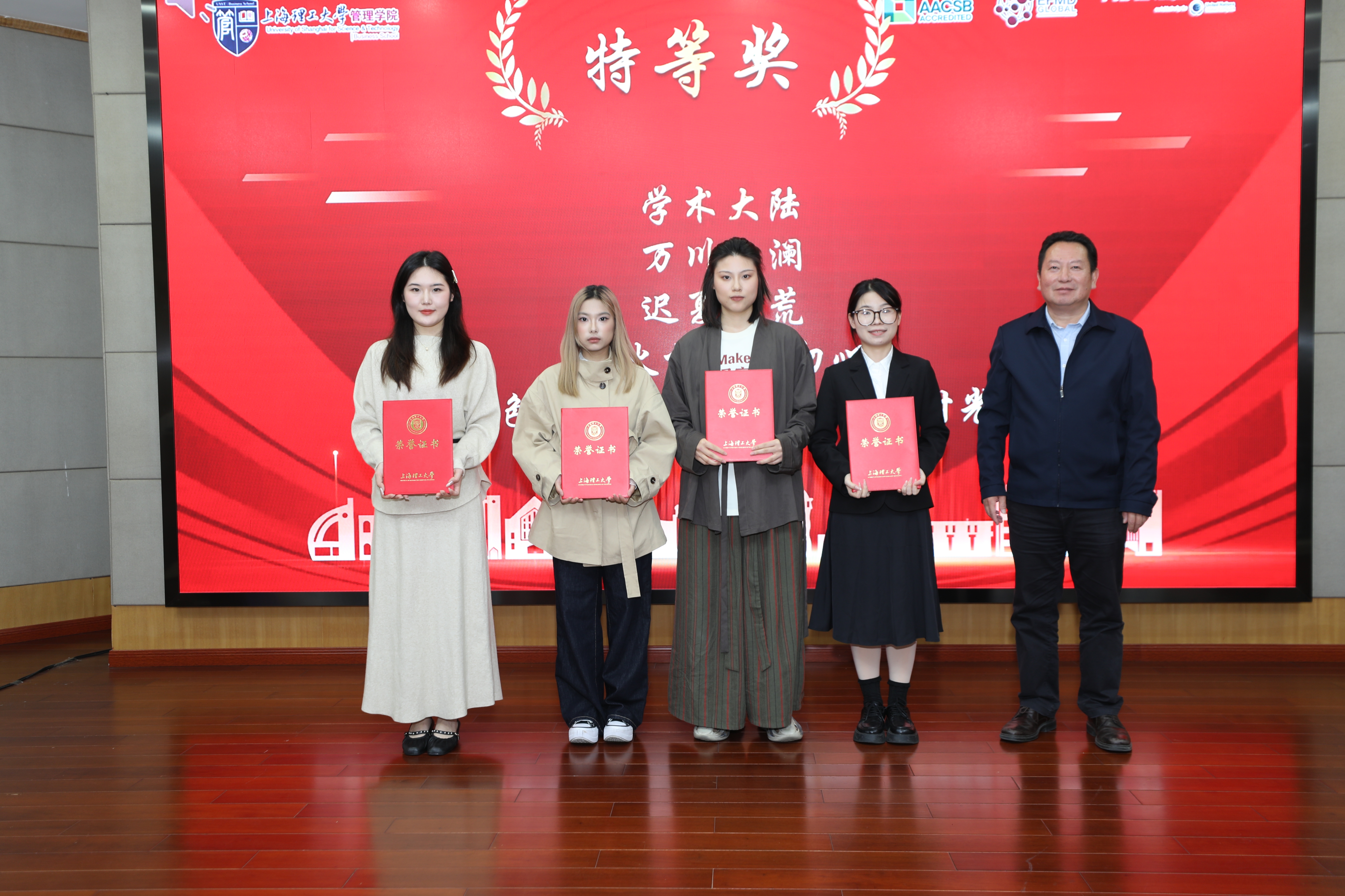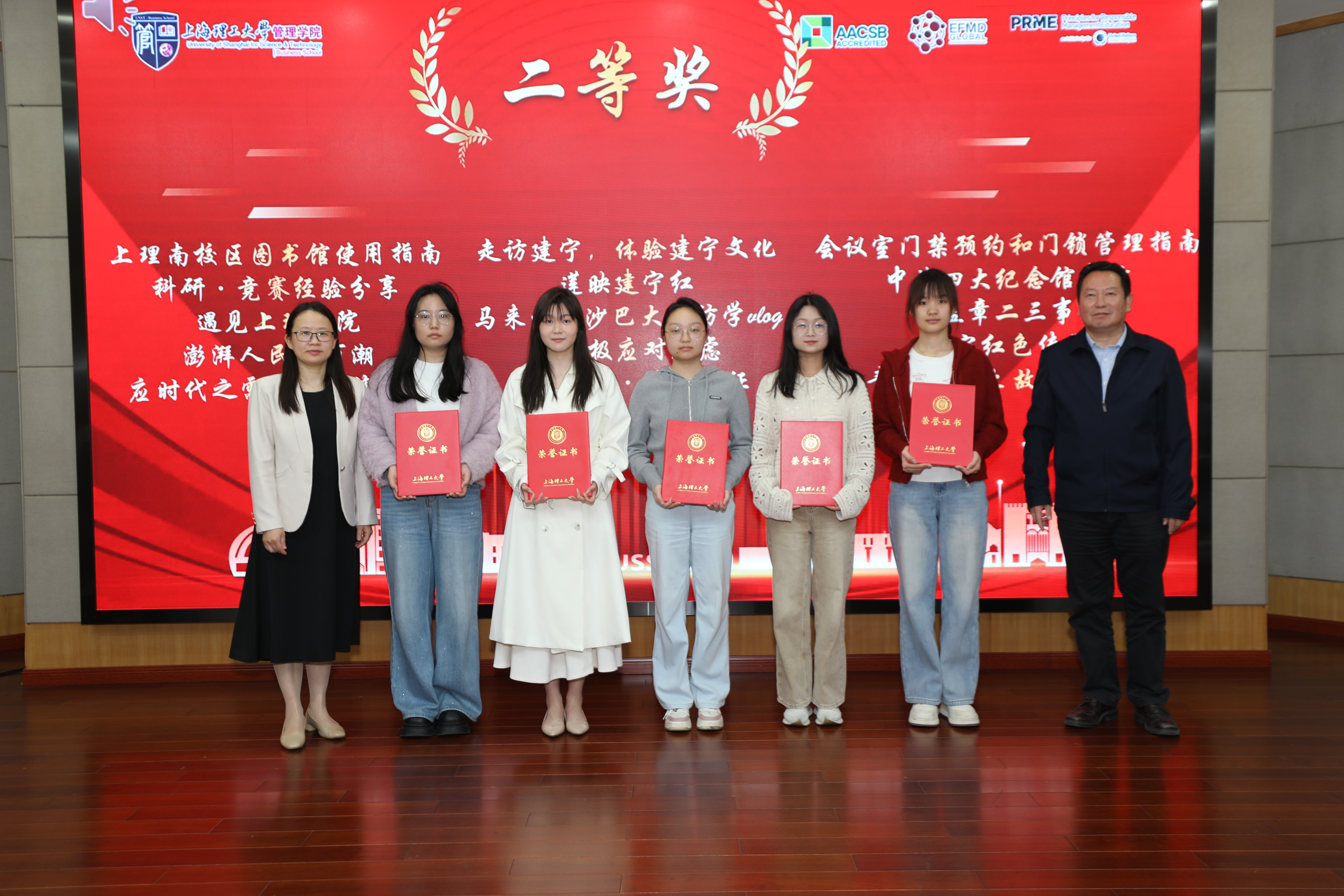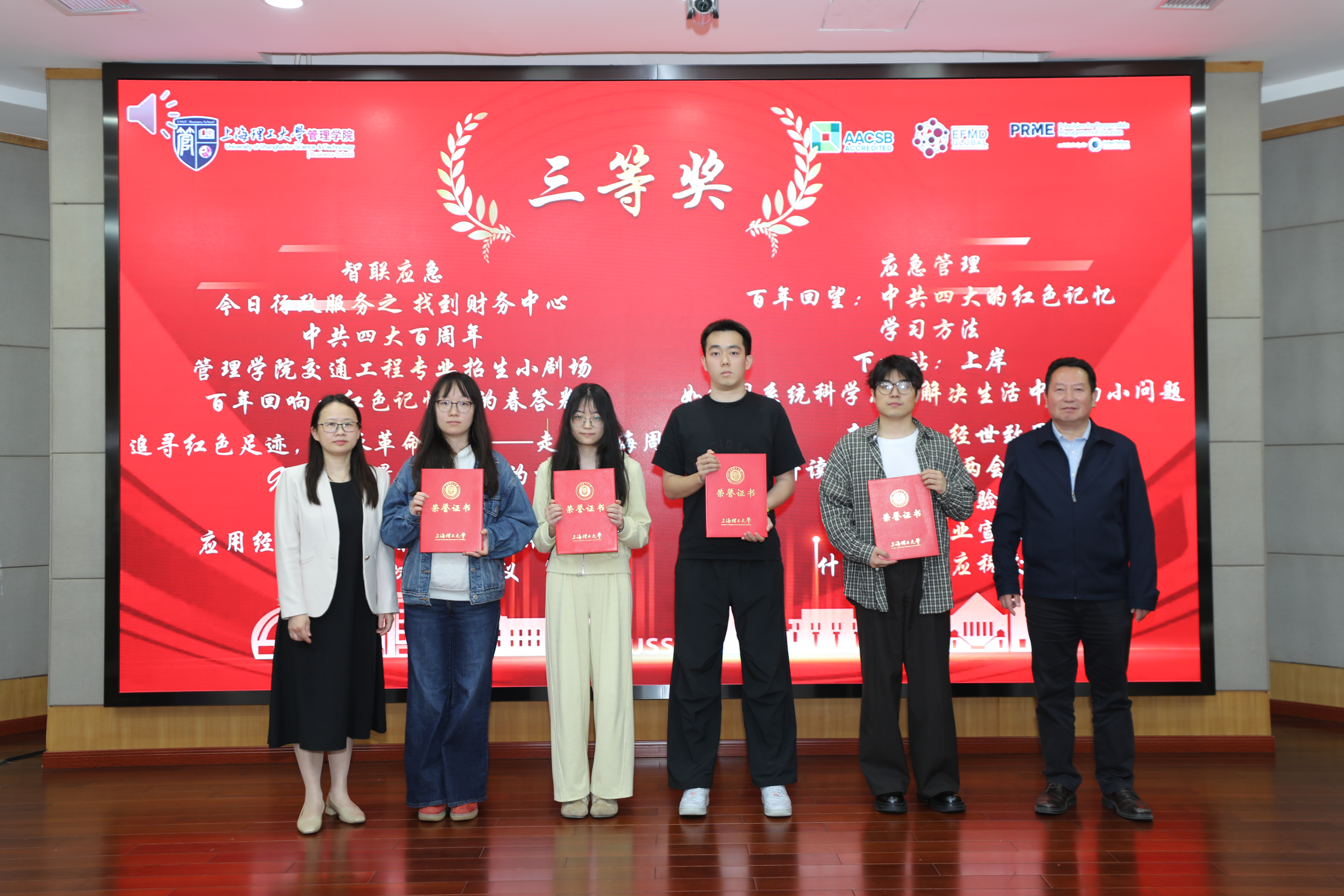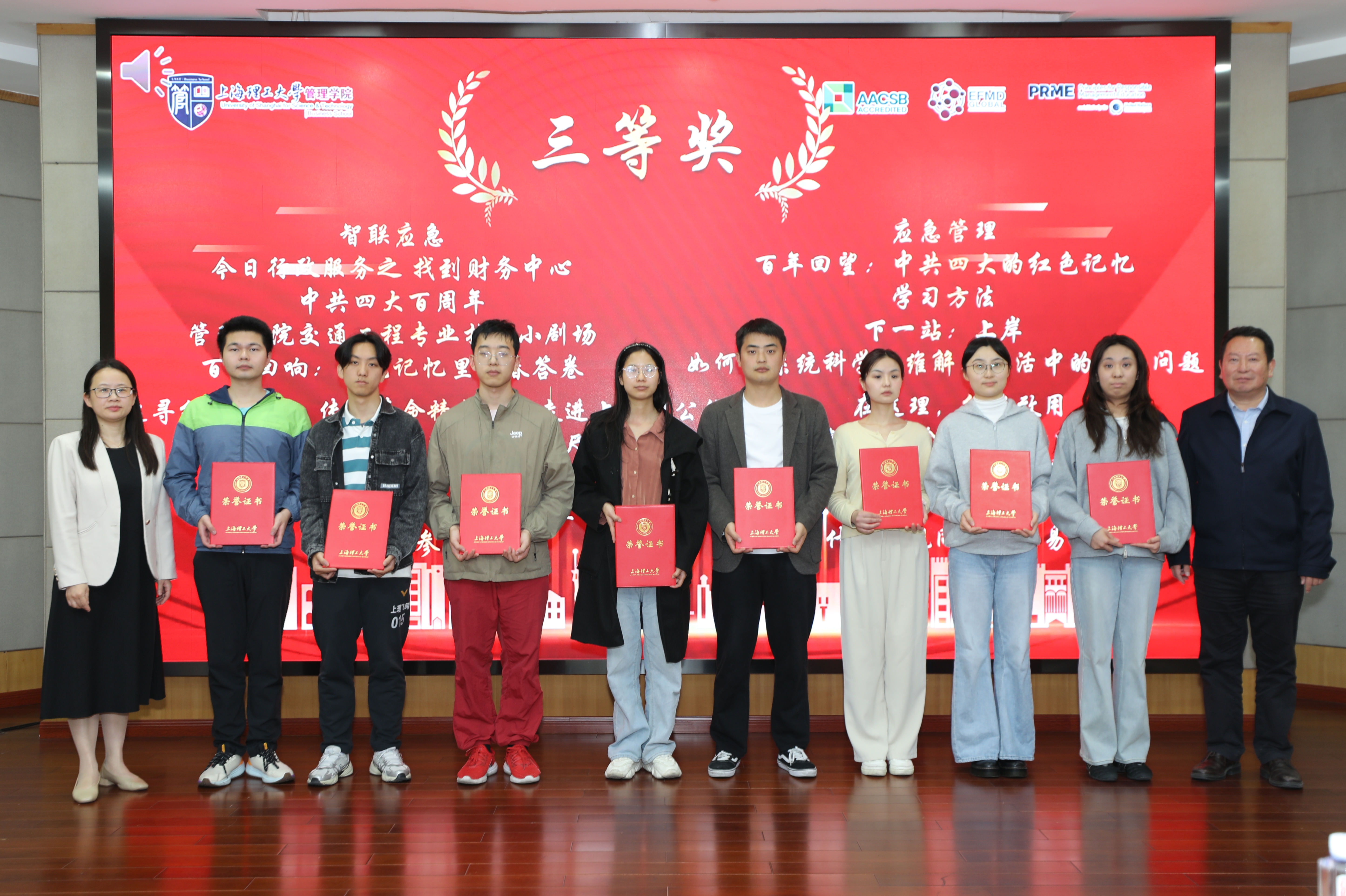2025年“青春飞扬,管院有我”短视频创作大赛得到了同学们的积极响应,共收到参赛作品111件。经过严格的资格审查与专家评审,最终有98件优秀作品脱颖而出。这些作品题材丰富、视角独特,充分展现了同学们的创意才华。颁奖仪式上,马静波和严瑾共同为获奖学生代表颁奖,并合影留念。