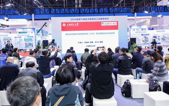 展会期间,学院教师积极参与行业高层对话与学术组织工作。刘业凤教授在“2026臭氧气候技术工业圆桌论坛”上作“单元式空调机可燃性制冷剂充注减量化方法及应用”专题报告,引发行业广泛关注与讨论。此外,教师团队还参与了中国制冷学会、中国制冷空调工业协会的多项工作会议,涵盖团体标准、工业制冷、人工智能应用及工程能力建设等工作委员会,在学科发展与行业标准制定中积极建言献策,持续输出“上理工智慧”。