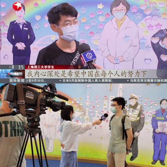 材料学院杨德鹏、蔡以恒同学接受上海广播电视台SMG采访讲述自己参观感悟并在东方卫视播出