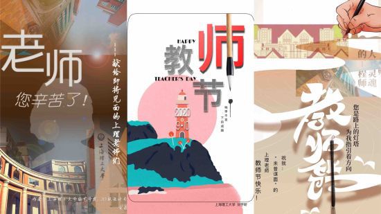 今天的迎新“偶遇”第36个教师节,出版印刷与艺术设计学院新生宋添羽、刘宇昕、谭婷月为即将谋面的老师们制作了教师节祝福海报。“临近开学,我看到学校发布了周密、合理的迎新计划,也看到辅导员老师耐心为我们解答问题,作为艺术设计专业的我就想着设计一幅海报送给老师,以表达祝福。此外在设计中也添加了很多上理建筑的元素,让我更好地了解学校,也对大学生活有了更多期待。”宋添羽谈道。此外,材料科学与工程学院也准备了明信片,让新生们为老师写上节日祝福,“当您收到这张明信片时,我已是上理万千学子中的一员啦,在教师节这天给您送去真诚感谢。”新生王豫航写道