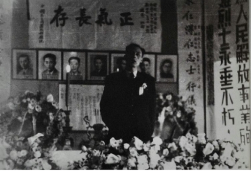 1949年6月下旬在国立上海高级机械职业学校大礼堂举行赵寿先烈士追悼会