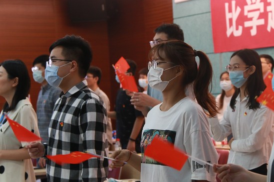 在新中国成立71周年之际,活动最后,与会人员全体起立,手持小国旗,齐唱《我和我的祖国》,以青春党员之声为祖国母亲献上最诚挚的祝福。