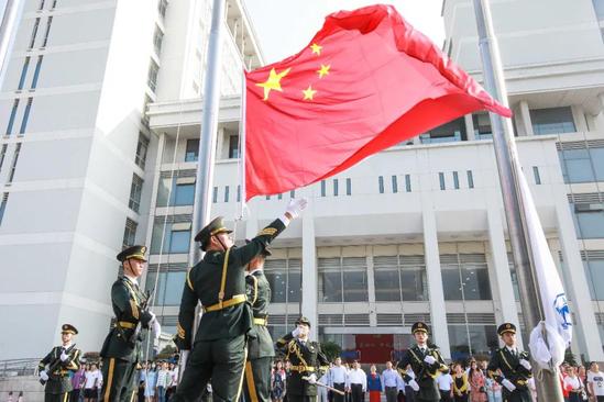 10月1日,复旦大学庆祝中华人民共和国成立71周年升旗仪式暨学生国庆体育挑战赛开赛式在邯郸校区国旗坪隆重举行,200多名师生代表参加了仪式。