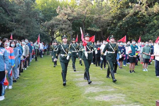 清晨,上海理工大学庆祝中华人民共和国成立71周年升旗仪式在学校国旗广场举行。