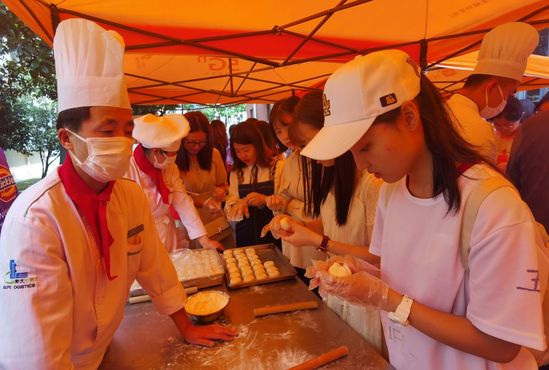 在这场“市集”上,师生们可以体验制作中秋节灯笼,用十字绣技法完成学校校训图和校园平面图,还可以制作桂花糕、包饺子等,大家共享“劳动成果”。校方也动足脑筋,不仅为师生提供60余种地方特色美食,还“捧”出了以淮扬狮子头为浇头的“国庆中秋团圆面”,以基围虾、蟹肉棒、香菇为浇头的“众志成城同心面”等,师生如果“光盘”还可免费领取月饼。