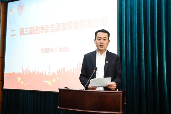 盛春向即将出征的志愿者们授旗并寄语。他指出,在前两届进博会上,上理工“小叶子”以热情周到的服务赢得了国内外嘉宾的交口称赞。在疫情防控常态化背景下,今年比前两届的挑战更大、难度更高。这是中国、是上海向世界展示中国抗“疫”成果、展示进一步扩大对外开放决心、加强对外交流与合作的盛会,更是中国人民向世界传递信心的盛会。希望上理工“小叶子”为上海再次举办一届成功、精彩、难忘的世界性盛会贡献青春力量。