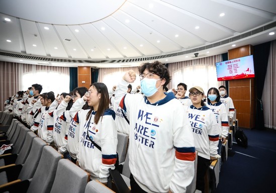 在志愿服务精神的鼓舞下,全体志愿者庄严宣誓,承诺发扬“奉献、友爱、互助、进步”的志愿服务精神,以饱满的热情、高度负责的态度,为进博会作出自己的贡献。
