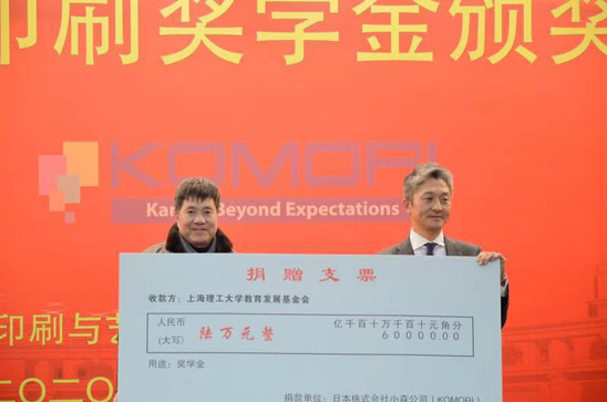 近日,2020年小森印刷奖学金颁奖典礼在我校图文信息中心第一会议室举行。日本小森株式会社副社长山根健太郎、小林印务董事长余国强、日本小森株式会社职员冯全强以及日本小森株式会社职员张腾,我校国际交流处处长马晓婷、学生处副处长岳敏楠、基金会办公室董轩志,版艺学院院长蔡锦达、党委副书记尚娅、上海出版印刷高等专科学校学生处资助专员吴桢及全体获奖学生参加颁奖典礼。