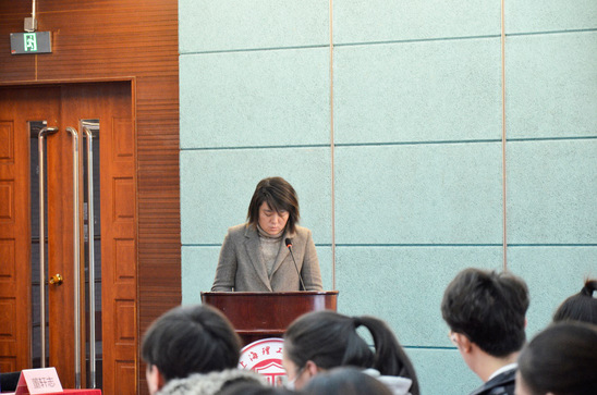 与会嘉宾和领导共同观看了小森公司的介绍视频,对小森公司有了更为全面的认识。尚娅对与会嘉宾表示感谢,并宣读了因疫情影响未能到场的小森公司会长善治的信函,信中表达了对校方领导一直以来支持小森奖学金活动的由衷感谢,对本年度获得小森印刷奖学金的学生表示热烈祝贺。如今印刷行业技术发展日新月异,需要优秀学子前赴后继、奋发努力参与传承和推进这一伟大事业。介绍完到场嘉宾后,尚娅忆起去年种下的五棵樱花树已于今年三月底如期盛开,这五颗樱花树将见证中日民间文化交流以及中日双方对于印刷人才培养的大力支持。