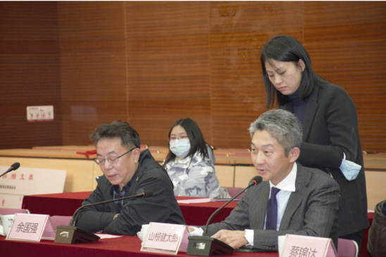 在互动环节中,学生们纷纷主动向嘉宾提问请教。有学生问到“作为即将毕业的学生,在实际与行业接触后发现自身理论和实践有所差距,更高的学历和继续实践哪个能更快提高实践技能?”山根健太郎指出,所有工作都没有捷径,更高等的教育能帮助增加知识,工作中也能学到更多知识,努力学习、认真工作,最终才能真正提高专业技能。余国强指出优秀的人取得成功最重要的几个因素,并用自身经历证明持之以恒的可贵性。他表示,同学们不论身处任何工作岗位,都要不断学习、不断思考、不断提升,才能在社会站稳脚跟、取得成功。