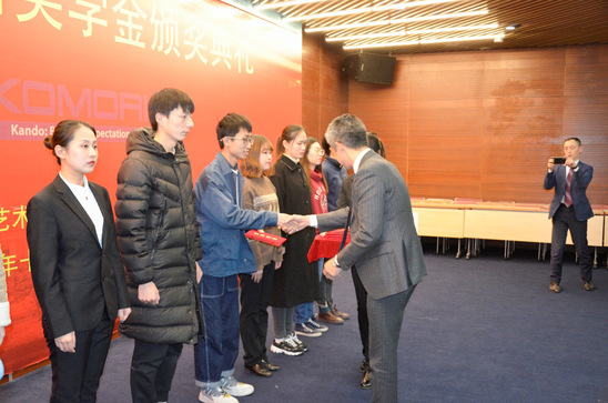 蔡锦达介绍了小森印刷奖学金评审情况,并由马晓婷宣读获奖同学名单,山根健太郎和岳敏楠共同向获奖者颁奖。