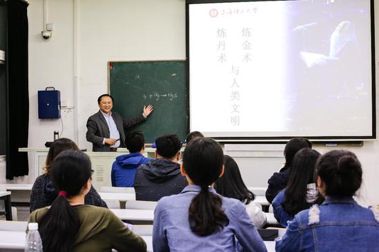 缪煜清老师在给学生上《人类文明与化学》通识课。