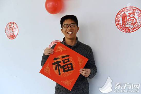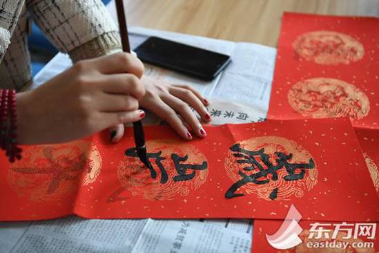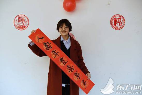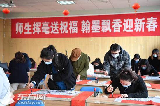 上海理工大学的留校学生写春联迎春节