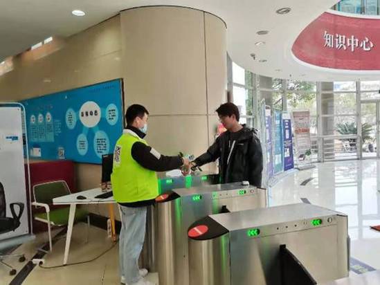 二工大学生志愿者在校园内参与疫情防控