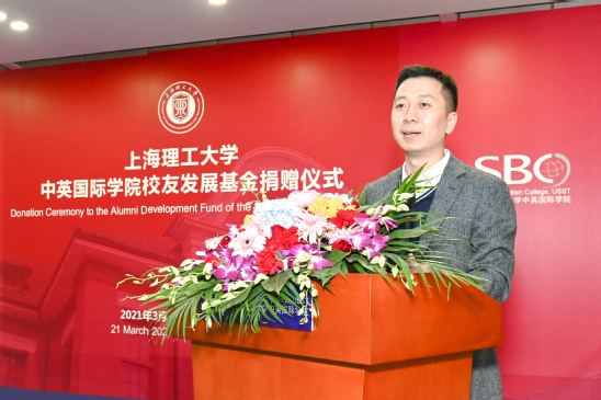 3月21日下午,中英国际学院在复兴路校区教学楼201学术报告厅举办校友发展基金捐赠仪式,学校校友工作联络处处长、校基金会办公室主任孟宝全,学校校友工作联络处副处长王杨,中英国际学院副院长单彦广,学院党总支副书记、行政副院长徐琳,学院校友理事会代表和毕业生代表、师生代表出席活动,徐琳代表学院致欢迎辞。