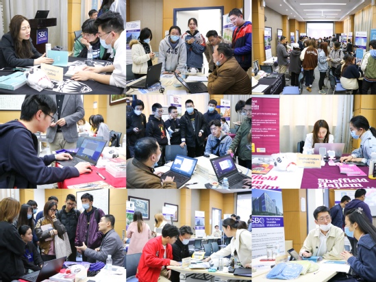 中英国际学院2021年度英国合作大学咨询会于3月23日至24日举行,9所英国合作大学代表在教学楼T113为学生提供未来在英国学习的各类专业和就业信息一对一面试咨询服务,吸引200多名学生积极参与。
