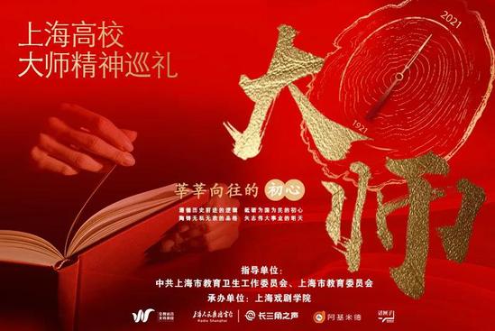 2014年至今,上海市教卫工作党委大力实施上海高校“向大师致敬——大师系列校园剧”扶持计划,截至2020年底,已成功孵化创排19部大师剧作品。2021年,在中国共产党百年华诞之际,作为对以文化人、立德树人高校思政新课堂的又一探索,根据“大师剧”系列所改编创作的“大师剧”系列融媒内容产品——“上海高校大师精神巡礼”系列短片将以更生动的视角、更立体的形态,于3月23日(中国共产党百年华诞倒计时100天)起,在“上海教育”微信公众号推出。
