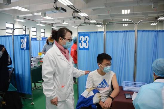 今天,同济大学和杨浦区卫健委联合,在同济大学四平路校区设立新冠疫苗接种点。“今天预计有5400名师生完成接种。”同济大学校医院负责人毕婉蓉说。