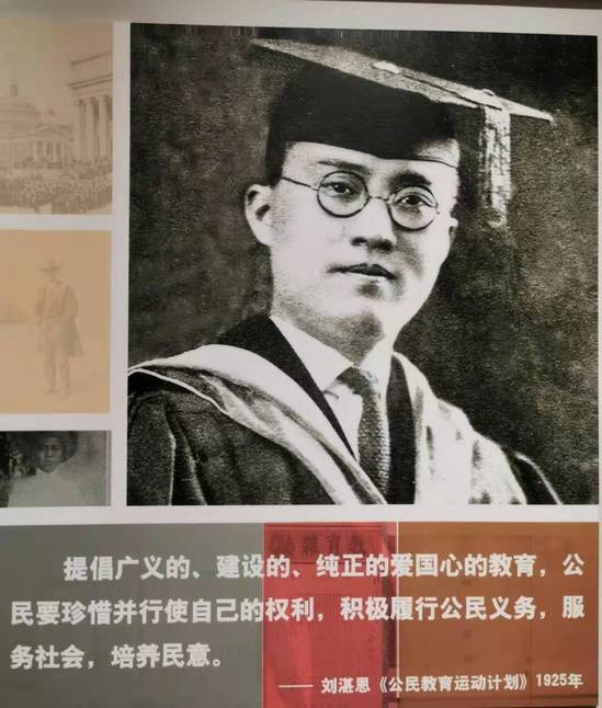 他让沪江大学从“在中国的大学”变成“中国的大学”。也是在这里,他积极拥护中国共产党抗日民族统一战线主张,积极探索教育救国之道,铸就成一座不朽的精神丰碑。1938年,刘湛恩被日伪暗杀身亡。他用热血践行了“广义的、建设的、纯正的爱国心”。