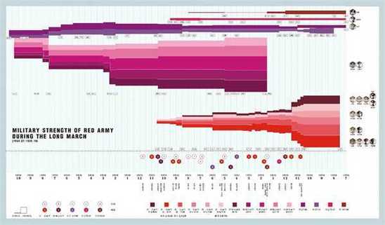 今年正值长征胜利85周年之际,上海理工大学出版印刷与艺术设计学院2020级艺术设计学子通过信息设计与数据可视化的方式,对这一段党史上波澜壮阔的重大转折进行了别开生面的讲述。通过调查整理大量历史文献资料,将数据和历史信息进行艺术化处理,设计出一系列兼具信息深度和视觉美感的可视化党史作品。