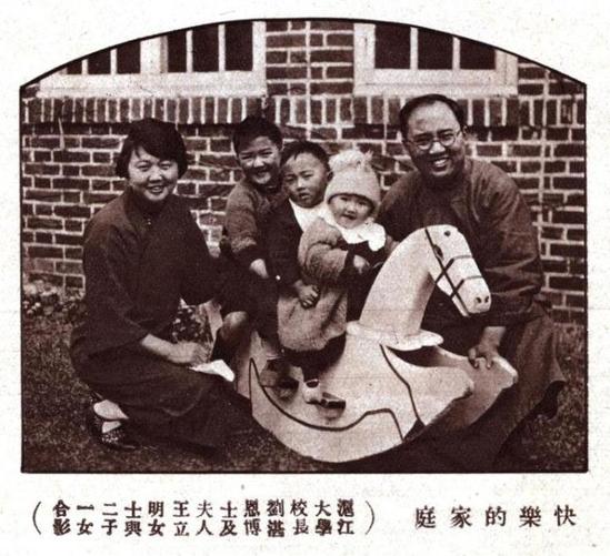 1930年刘湛恩与王立明一家(儿子光昇、光华及女儿光坤)在沪江寓所