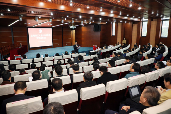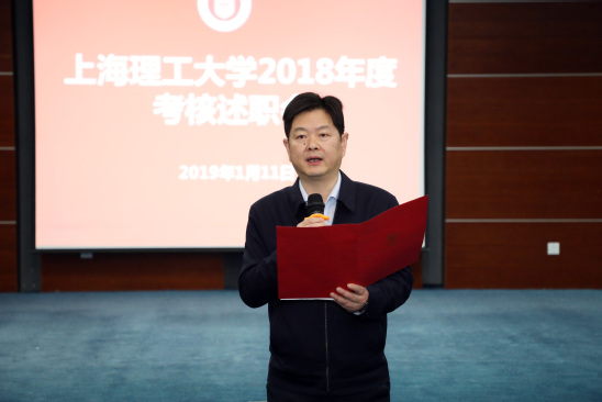 校长丁晓东作总结讲话,他充分肯定了各部门2018年度的工作和成绩。他表示,在本次述职汇报中,各部门所展现的饱满精神状态,分享的丰硕经验成果,鼓舞了人心,展望了未来,充分体现了上理人“咬定青山不放松,一张蓝图干到底”的信心和决心。他对全体师生提出了三点要求:一是认真学习贯彻习近平新时代中国特色社会主义思想和党的十九大精神,充分践行习近平总书记的“奋斗幸福观”。要以攻城拔寨的气势、干事创业的热情,紧紧抓住特色显著的一流理工大学建设目标,沿着“三步走”道路,认真落实好学校第八次党代会提出的“八大任务”。二是要运用马克思主义唯物辨证法,正确处理好发展和稳定的关系。在发展前进的道路上,既要保持你追我赶奋勇争先的势头,又要保持清醒的头脑,牢守安全稳定底线。三是注重品牌形象建设,善于表达和展示自己。近年来,学校在校企合作、产学研结合、科技成果转化等方面硕果累累,是“埋在沙里的金子”。全体师生在发扬工科理性思维和实干精神的同时,还要做好自我宣传,增强对上理工的自豪感和认同感。最后,他祝愿全校师生新年快乐、阖家幸福。