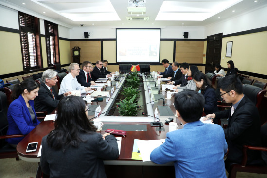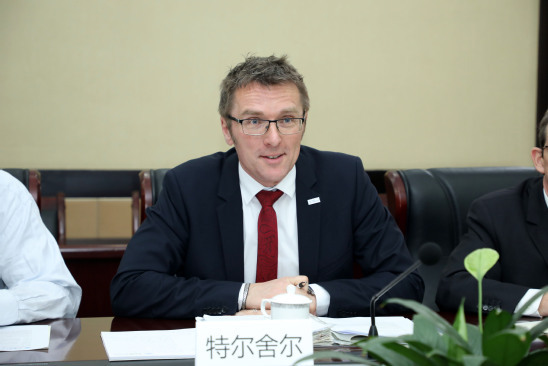 近日,德国汉堡应用技术大学特尔舍尔(Teuscher)校长代表团访问我校。4月2日上午,校长丁晓东会见代表团一行,副校长蔡永莲、国际交流处、中德学院党政负责人参加会谈。