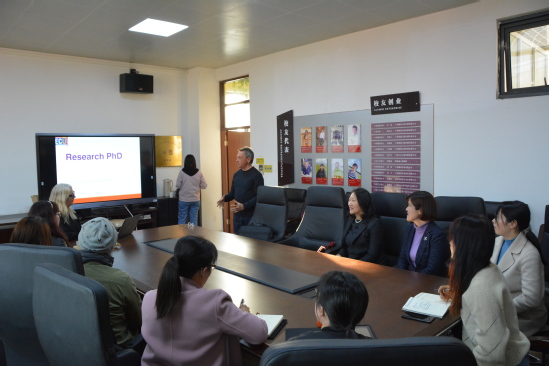 会后,Clive Barstow教授一行与外语学院、版艺学院的项目申请者见面,Lyndall Adams教授详细介绍了在埃迪斯·科文大学攻读博士学位的申请、课程以及毕业论文要求等,并热心回答了申请者提出的问题。