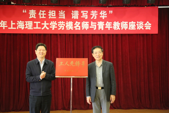 会上,首先由孙跃东和庄松林为“上海市工人先锋号”揭牌。揭牌仪式后,劳模、名师分别结合自己的科研经历、工作阅历、育人体会等畅谈人生感悟。杨茉教授、张淑平教授和朱亦鸣教授先后和青年教师分享心得,勉励青年教师要不忘初心,持之以恒,爱岗敬业,努力成为学生的良师益友,促进教学相长;要精益求精,追求卓越,保持良好的心态,在教学和科研上齐头并进,为学校发展添砖加瓦。