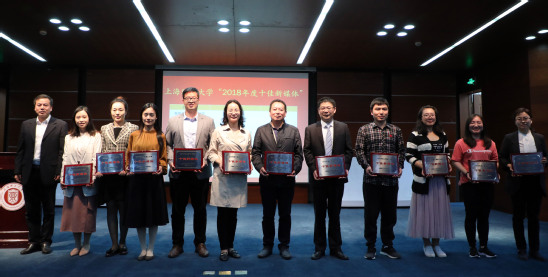 活动表彰了2018年校园“十佳网站”“十佳新媒体”“优秀新媒体”等获奖单位、2018年学校易班文化建设月优秀作品、上海高校网络思政工作论坛优秀征文、纪念改革开放四十周年校园优秀作品等。能动学院、管理学院、版艺学院、校工会、校团委负责人分别就各自单位的媒体平台建设情况、运营理念和管理经验进行了交流分享。