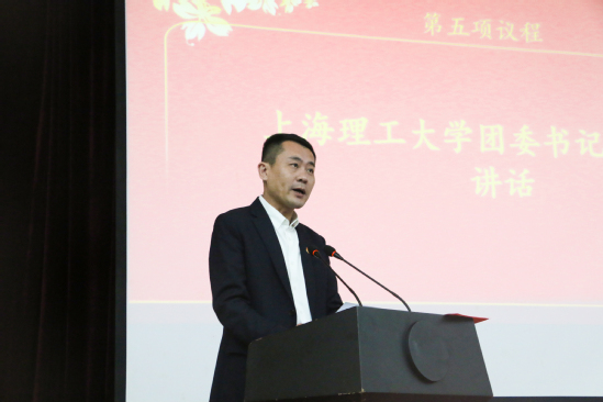 上海理工大学党副书记、副校长盛春讲话,他肯定了各级研究生组织在推进学校发展、服务学生成才、推动社会进步等方面发挥的重要作用,并对进一步推动完善研究生学生工作提出了三点期望:第一,加强研究,建设“用心”的研究生团学组织;第二,加强培养,建设“用情”的团学干部队伍;第三,加强协同,建设“立体化”工作体系。最后,盛春书记希望大家能够始终牢记宗旨、不辱使命,锐意进取、开拓创新,为推进我校高水平大学建设,为国家经济社会发展进步做出上理学子应有的贡献!