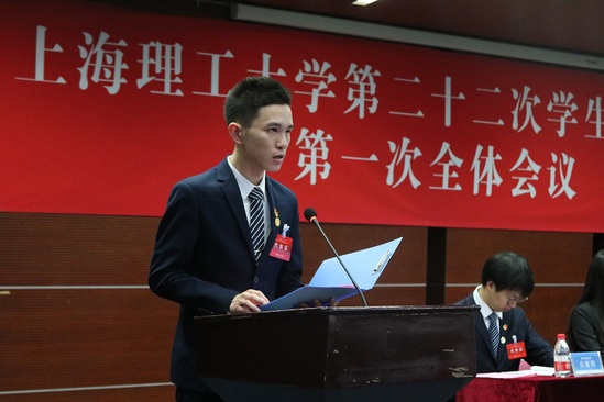 上海理工大学第二十二次学生代表大会第一次全体会议上,校学生会主席杜嘉源作《上海理工大学第二十一届校学生会工作报告》,从思想建设、组织改革、权益维护、活动开展四个方面对学生会的工作进行总结;校学生会副主席施沪彬受上海理工大学第二十二次学生代表大会提案工作委员会委托作《上海理工大学第二十二次学生代表大会提案工作报告》。