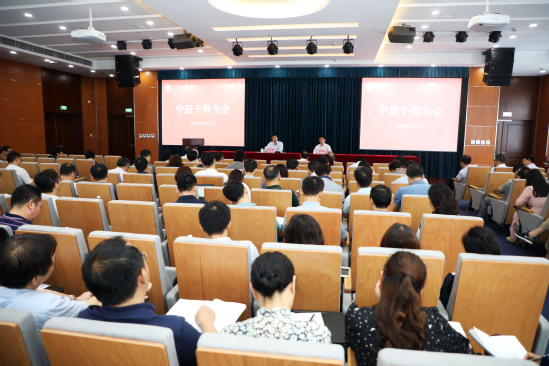 7月3日,学校在先进制造大楼一楼报告厅召开中层干部大会,全体在校校领导、全体中层干部参加会议。会议由党委书记吴坚勇主持。