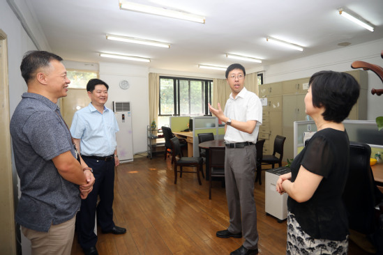 8月22日新学期开学第一天,上午9:00,校党委书记吴坚勇、校长丁晓东与在校部分校领导一行深入职能部处、公共服务中心、图书馆、食堂等地,检查新学期开学准备情况。
