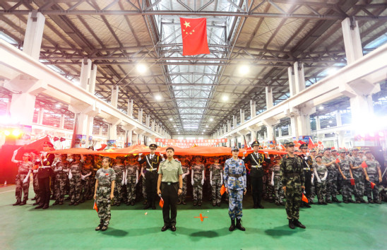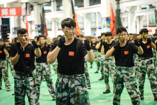 今年的开学典礼也是学校的军训总结表彰大会,军事科目表演轮番上阵。