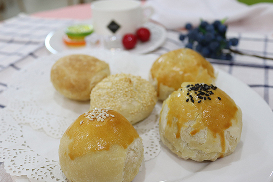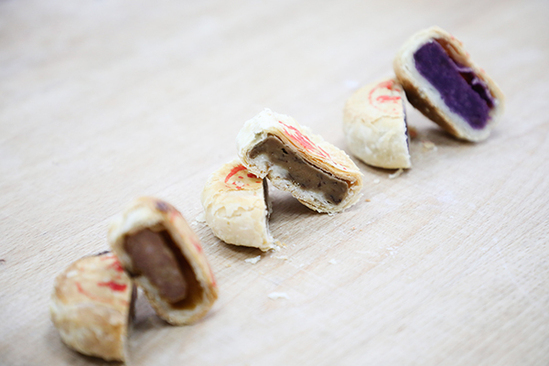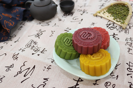上海理工大学:贴心后厨花式为大家准备了黑金核桃、金沙奶黄、榴芒牛奶等多种口味的月饼。