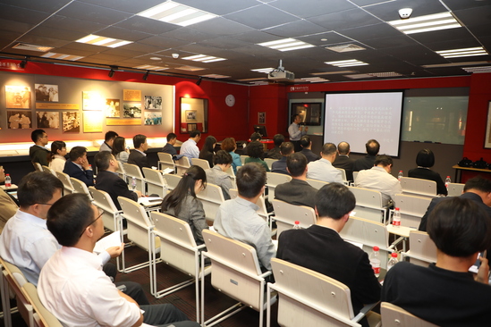 随后,在党性修养主题教室,党史档案展示区围绕“理想信念”“宗旨观念”“优良作风”“反腐倡廉”“善于学习”“群众路线”等六个板块,展示了党的历史上一些珍贵档案资料。与会人员逐一细细品读,透过历史这本“教科书”深深体会到老一辈无产阶级革命家身上所闪耀出的党性的光辉。中浦院教研部杨志强博士以“初心与使命——新时代共产党员的党性修养”为题,进一步解读了档案资料背后的历史故事以及党的初心使命。