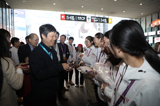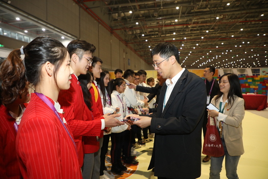 11月7日下午,校党委书记吴坚勇,校长丁晓东,党委副书记、纪委书记刘道平,党委副书记孙跃东,党委副书记、副校长盛春一行亲切慰问了在国家会展中心服务的上理“小叶子”——进博会志愿者,为志愿者们加油鼓劲,学校党委(校长)办公室、团委相关人员陪同慰问。