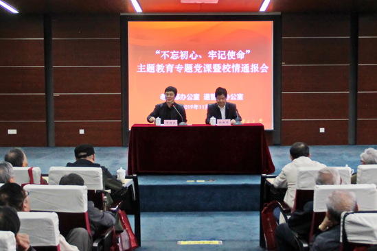 11月13日,学校离退休同志“不忘初心、牢记使命”主题教育专题党课暨校情通报会在图文信息中心一楼会议室举行。校长、党委副书记丁晓东为老同志上党课,并作校情通报。会议由校党委副书记孙跃东主持,近210名离退休老同志参会。