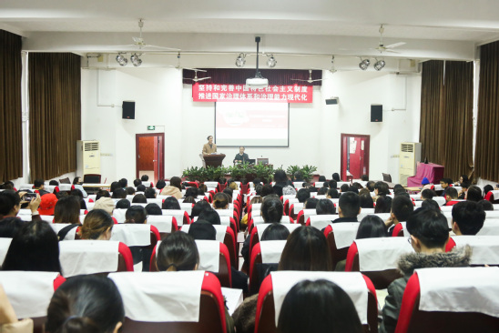 11月25日下午,学校党的十九届四中全会精神宣讲动员会在格致堂304会议室举行。党委副书记孙跃东,党委常委、宣传部部长叶磊出席会议,马克思主义学院教师彭宗祥、金瑶梅、胡绪明、牛海、刘科参加会议。