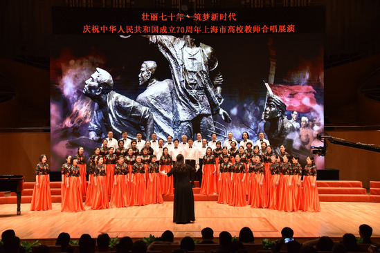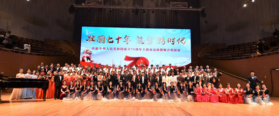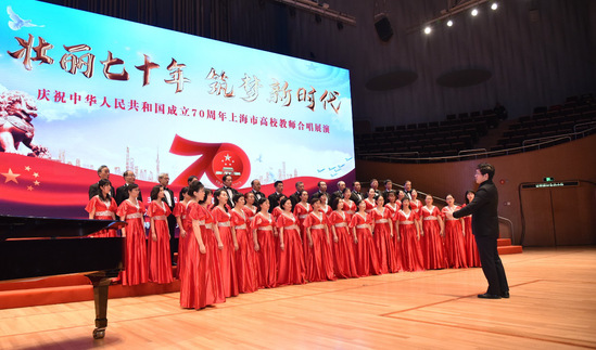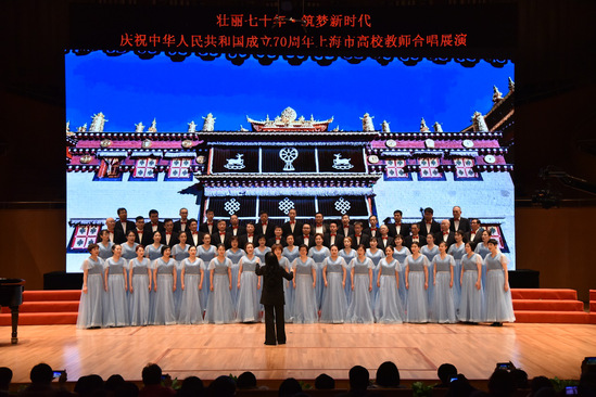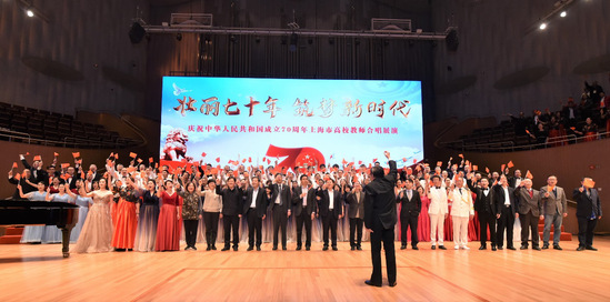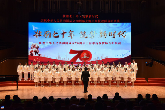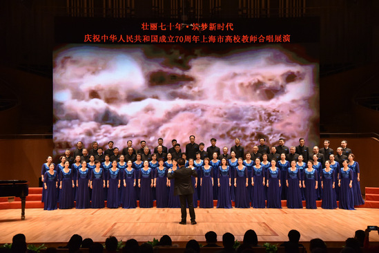 12月19日晚,2019年上海高校教师合唱展演在东方艺术中心举行。本次活动由中国教育工会上海市委员会主办,上海理工大学、上海市教工合唱协会承办,交通银行上海市分行友情支持。来自上海市10所高校,以及上海市社会科学界联合会、交通银行上海市分行、中职女校长等合唱团的近千名教师齐聚一堂,用歌声赞颂祖国,展示上海市高校教师的风采。