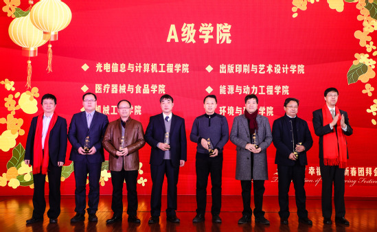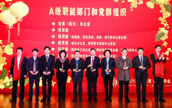 在新春团拜会上举行了颁奖仪式,对在2019年度部门考核和二级管理部门办学绩效考核中获得优秀的部门进行了表彰。