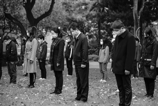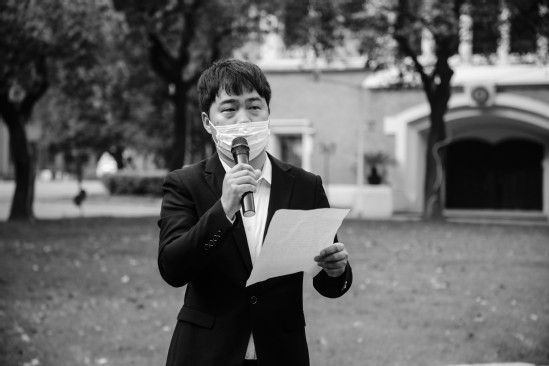 默哀礼毕,悼念铭记。“我是一名地地道道的湖北黄冈人,我想对牺牲的烈士们说一声:谢谢!”作为教师代表、基础学院辅导员熊冕在仪式上沉痛表示,“正因为这些在危难时刻敢于挺身而出,敢于直面艰险,敢于牺牲自己生命的烈士,才有人民的健康平安,才有国家的繁荣富强。作为一名24小时奋战在学生工作一线的辅导员,我和大家一起,正在秉承这种精神,冲在最前,守牢底线,坚决响应国家号召和学校党委对疫情防控工作的有力部署,与多部门携手并进,齐心协力,一起打赢疫情防控阻击战!”