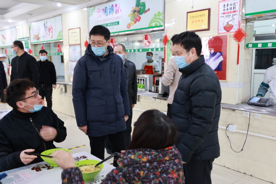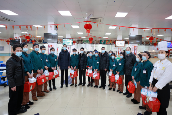 2月8日,农历腊月二十七上午,校党委书记吴坚勇,校长丁晓东,党委副书记、纪委书记刘道平,党委副书记、副校长盛春,副校长吴忠一行在党委(校长)办公室、保卫处、后勤管理处、工会等相关部门人员的陪同下,亲切慰问了春节期间坚守岗位的教职员工,给他们送去新年祝福。同时,对食堂、学生宿区、部分在建施工项目等重点区域进行了安全检查。