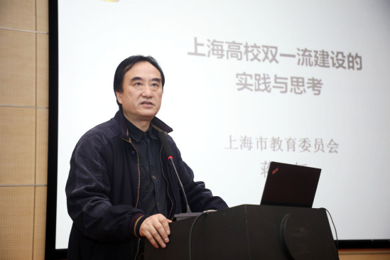会上,蒋红介绍了国家“双一流”建设的总体背景,上海市贯彻落实国家“双一流”建设方针的主要做法,并从学科建设、大学治理和精神文化三个层面以及新时代“双一流”建设的新要求、“双一流”建设与人才培养、“双一流”建设绩效评价等十个方面对一流大学的内涵、如何建设一流大学进行了深入解读。他指出,一流学科建设要坚持“四个面向”,坚持“有所为,有所不为”,在重要前沿科学领域、核心关键技术领域重点布局、重点建设并形成突破,进而带动学科上水平和学校整体水平提升,最终建成一流大学。在建设一流大学的进程中,要在治理层面不断完善以大学章程为核心的现代大学制度,从体制机制上保障学科布局优化、制度体系改革和治理效能提升;在精神文化层面要坚持正确的办学方向,传承严谨学风和科学精神,落实立德树人根本任务,通过“三全三圈十育人”机制培育品德一流的社会主义事业建设者和接班人。蒋红在报告中充分肯定了上海理工大学高水平大学建设取得的成效,并期望上海理工大学在关键核心技术攻关尤其是医疗器械方面继续有所作为,持续在医工交叉领域攻坚克难,加快高端医疗装备关键技术研发,积极构建“政产学研医用”一体化创新体系,助力打造创新链、产业链、价值链三链融合的产业生态。