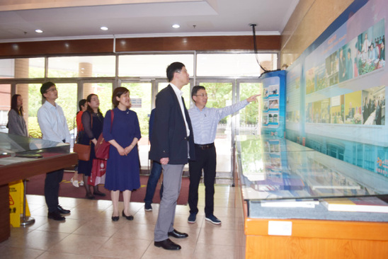 吴坚勇一行首先参观了美国研究中心展厅,听取了有关中心发展沿革、成果建设及国际交流等方面的介绍。